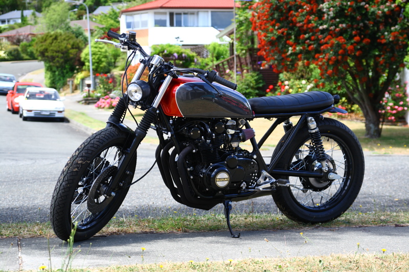 Mad Ratter, User des unbeschreiblich inspirierenden DoTheTon-Forums, hat dieses Misstrauen allerdings nicht verdient. Ohne jede vorherige Erfahrung hat er aus einer wenig auffälligen blauen GS550 eine absolut auffällige Tracker/Scrambler-Schönheit geschnitzt. Linie, Farben, Details: Auszusetzen gibt es am fertigen Krad absolut nichts, auch wenn die sehr kleine Lampe sicher nicht jedem gefällt.